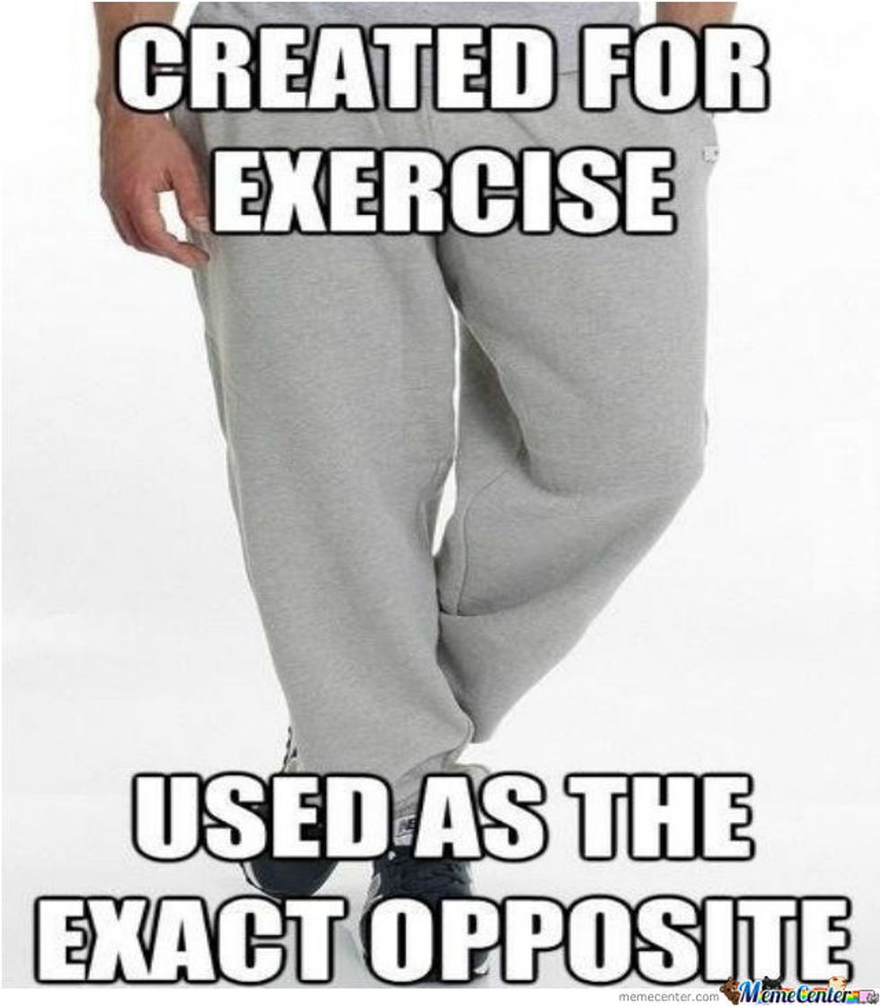 "Sweatpants hair tie chillin' with no makeup on"....that's when you know it's finals week. It's that time of year, the time we've been dreading this entire semester: FINALS SEASON! Happy holidays. This is the time where people put everything in their lives aside and strictly focus on studying for tests and writing papers. People always say that what you wear can influence your attitude for the day. So obviously you gotta dress for success! But for me, "dressing for success" during finals week is wearing the most comfortable thing I can find so at least I feel physically cozy even if my mind feels stressed! And I KNOW I'm not the only one who feels this way. So for all of you who want to ditch the typical slogan of "beauty is pain" this week, don't forget these outfit essentials: