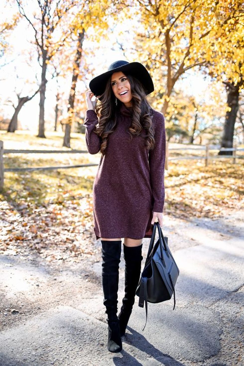 This is easily my favorite outfit to wear on Thanksgiving. It is such a simple outfit but is also very dressy at the same time. Thigh high boots are very in right now and go perfectly with a sweater dress. Add a big floppy hat and a leather tote to add something a little extra!