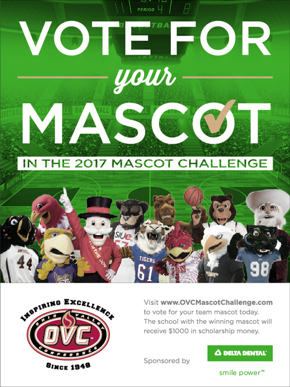 The Ohio Valley Conference has launched the 4th annual OVC Mascot Challenge, sponsored by Delta Dental of Tennessee. This challenge is open to all college mascots in the OVC, which includes the following universities and mascots: