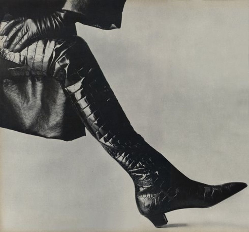 They made their biggest break in the Fall 1963 Collection by Roger Vivier. This is the Crocodile Thigh Boot designed by Roger Vivier for Yves Saint Laurent in 1963: