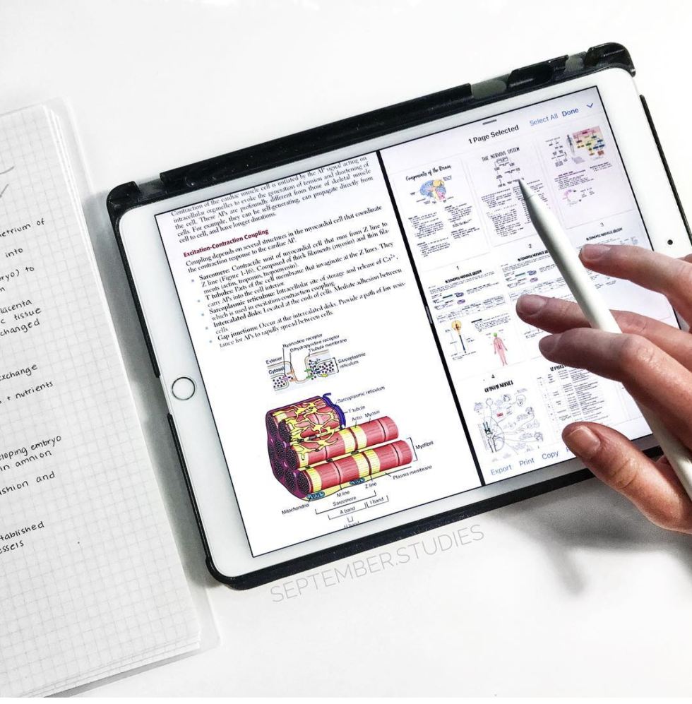 With apps such as GoodNotes, Notability, and OneNote, you will be able to easily organize all of your in notes into one virtual folder that you can access from any other platform. This is helpful for studying on the go and studying in general. Just imagine, you are running late and forgot your laptop, or you forgot your charger at home and would really like to access your notes— you can now simply pull up your handwritten notes on a nearby computer, on your phone, or even another tablet/iPad, instead of frantically running back to your dorm as you might have before. In addition, apps like these allow you to lose the 1,001 highlighters and felt pencils that were once necessary to make your notes colorful. With the help of note-taking apps, an infinite gradient of colors are suddenly at your fingertips. This is a great learning tool for any major.