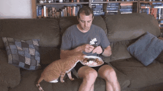 If you ever interrupt a cat when she’s in the middle of doing something important (such as sleeping), you will be punished for it. However, it's greatly offensive when you’re working on the computer, reading, eating or literally anything else when the cat thinks you should be showing her attention. Expect interruptions in the form of a tail in your mouth or paws on your keyboard.