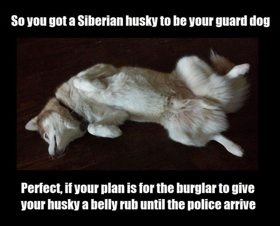 As scary as they may look, you can't trust them to be the guard dog. Huskies love attention.