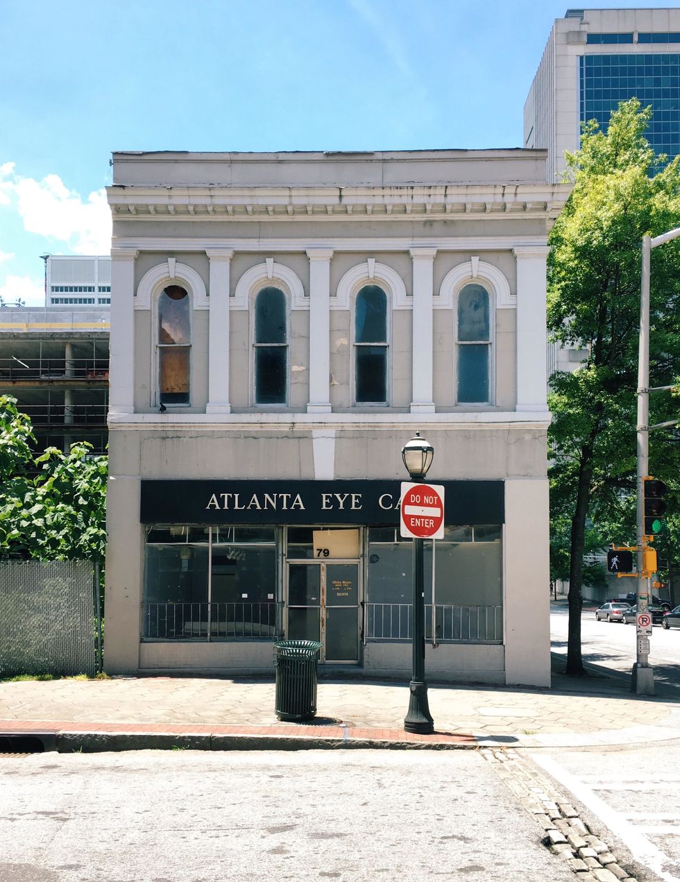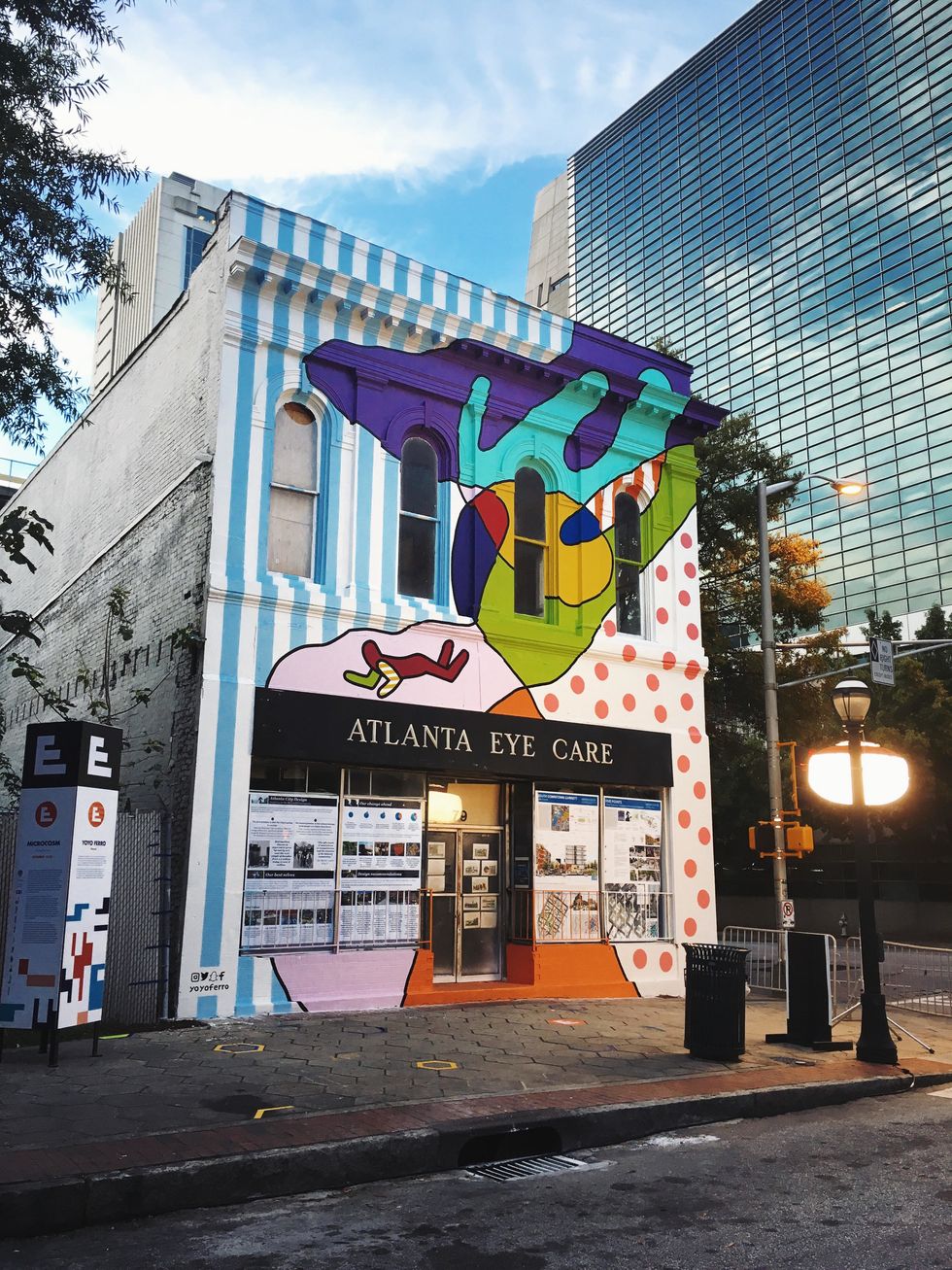 The "Atlanta Eye Care" building sits on the corner of MLK Jr. Drive and Broad Street, both of which are busy streets close to the populous Five Points area while the above building is in a more depreciated, Southern edge of the Downtown area. Though the socioeconomic differences between the two locales are stark, Ferro's murals are intended to create a geographic sisterhood between the two neighborhoods, and these efforts are vital to Atlanta's revival as the city continues to serve as the next big hub for the entertainment industry.The concern, however, lies on whether this recuperation will truly occur or if it's simply another fancy rug purchased to hide Atlanta's urban decay. And if this is indeed the first steps to an Atlantan Renaissance, then how does Ferro's artwork play into the process? Which aspects of their locale do these murals represent, if any?