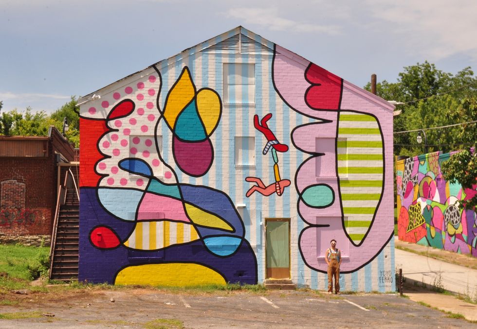This is Yoyo Ferro, the Atlanta-based artist from São Paulo, Brazil, who is best known for his contemporary graffiti-style murals around ATL. Back in mid-May of this year, he finished his first, high-caliber commissioned work for Adidas and Champs Sports.