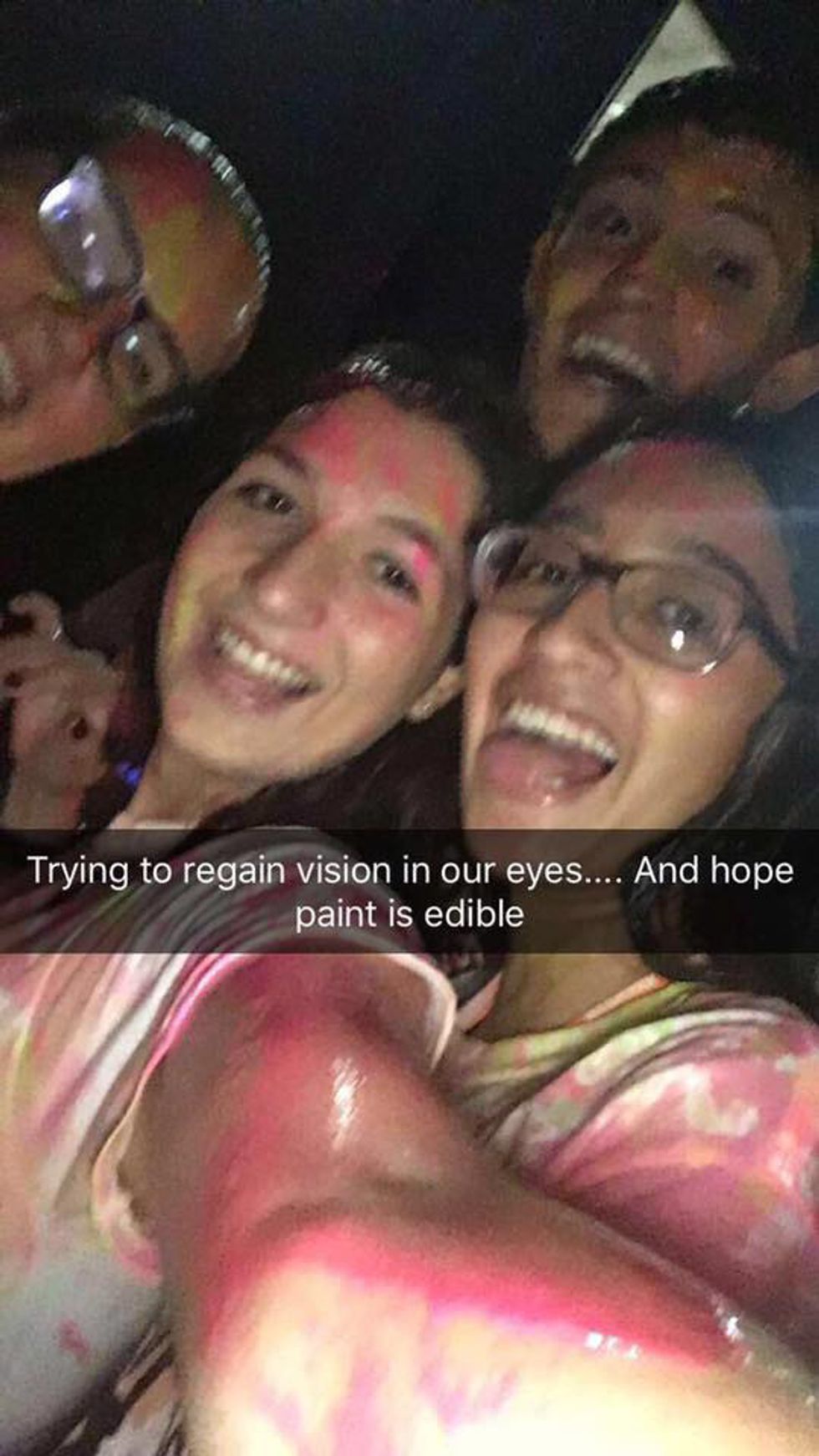 It took them a little bit to actually start painting us, I guess they were waiting for people to get there. But when they started, they started hard. Within seconds people were already covered in paint head to toe. Here's the few from our party from the back angle.