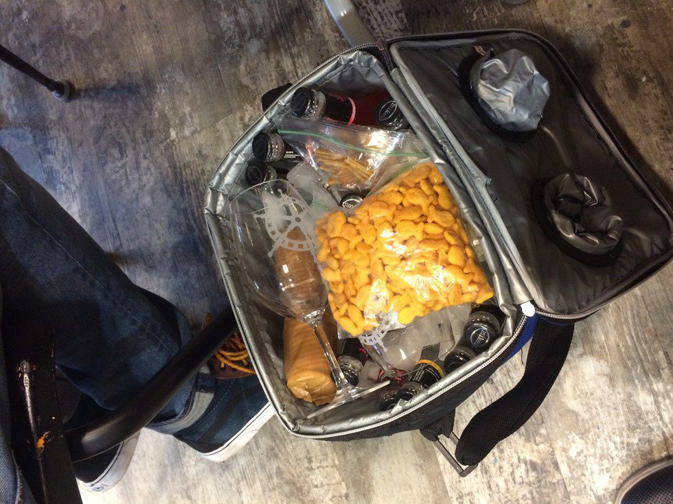 We were nervous because neither of us are great artists, but we liked the painting that the class was going to do and decided to go for it. Unsure of what to bring for a two-hour class, we packed a cooler and were incredibly prepared. This was all at Wine & Design in Cleveland !