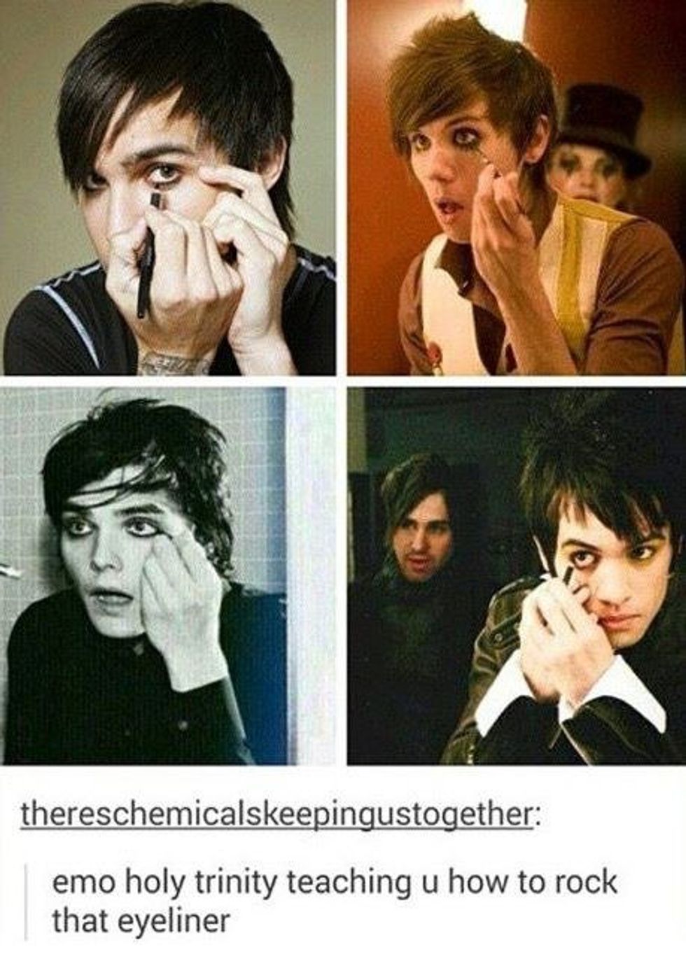 I was first introduced to it by my personal favorites, Fall Out Boy. I remember being in fifth grade, not knowing any of the actual words to "Sugar, We're Going Down" but having it stuck in my head all day nonetheless. We requested "Dance Dance" at every school dance. We swooned over Pete Wentz's smile and flawless eyeliner (guyliner, as it was dubbed). Then Panic! at the Disco was introduced and we had even more guyliner to examine. I distinctly remember one morning before school when two girls were in the hallway with one of those teen magazines fighting over who was cuter, Ryan Ross or Brendon Urie. (Hint: It's totally Brendon Urie.)