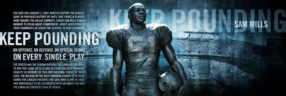 Our motivational phrase “KEEP POUNDING” actually means something more. On the Panther’s website, it gives a detailed reason for our mantra. Carolina Panther player and coach, Sam Mills, always used the phrase in his speeches. Now it means so much more to so many more people because we all need to keep pounding.