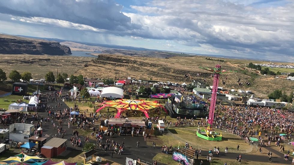 Picture this: we're raving in the Gorge Amphitheater to some sick beats. BROHUG is honestly just getting started. I'm still sitting but my arms are waving in the air. A man has just slid down the hill due to some moisture. Things are rowdy, but not near 100% yet.