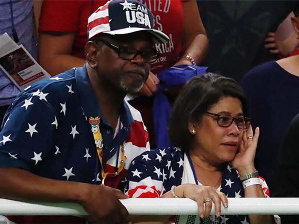 First off, I'd just like to say their outfits are the best outfits I've seen the entire Olympics. 'Merica! Simone Biles' parents are not her biological parents as many of us have come to learn. Simone was adopted by her grandfather Ron Biles and his wife Nellie when she was young and she has thought of them as mom and dad ever since. Biological or not, they helped to raise the best gymnast in the entire world.