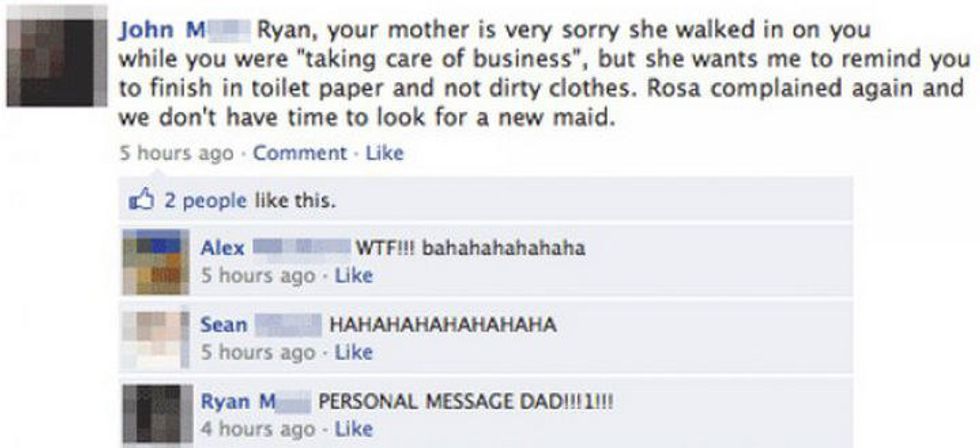 No. When you asked me if I had put my ointment on last night you wrote it on my Facebook wall. A Facebook wall is public-- as in everyone and their mother saw that you asked me that.