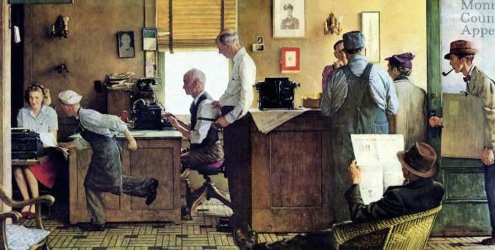 Yes, it’s true. Norman Rockwell, arguably one of the most famous artists of American culture, came to Paris, Missouri in 1946 and painted “Norman Rockwell Visits a County Editor.” It features Jack Blanton, the editor of the Monroe County Appeal at it’s prime, and the newspaper office busting at its seams with customers. This past November, the painting sold for $11.5 million at auction.
