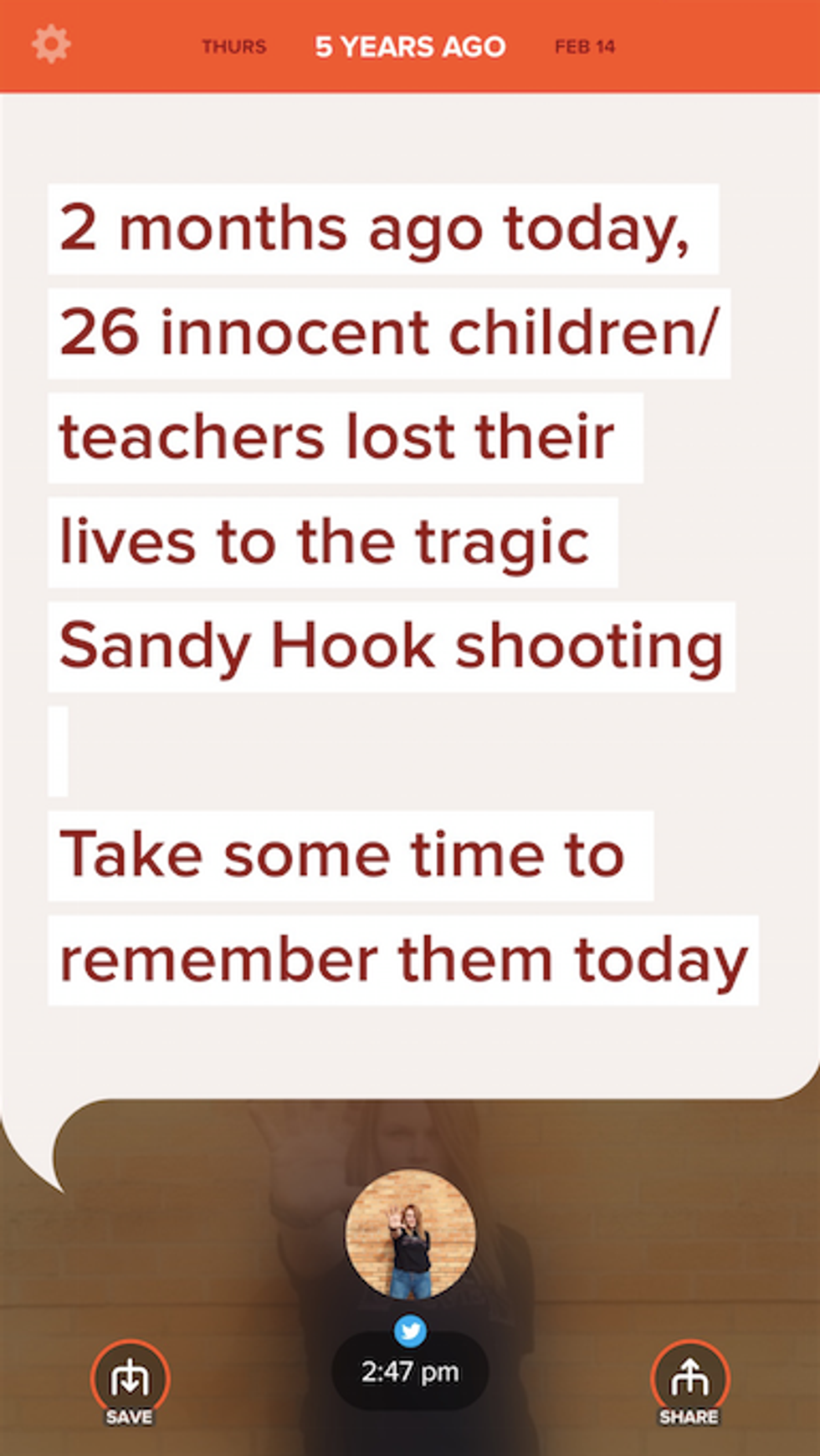 I remember the first mass shooting I was rocked by. Sandy Hook. December 14, 2012. It was the first one I followed on the news, it was the first one that made me cry, it was the first one I truly remembered. I posted about it beyond the day it happened, in fact, I posted about it two months later. I know this because this was on my TimeHop this morning. And this post was made five years exactly before the Marjory Stoneman Douglas High School shooting today, February 14, 2018.