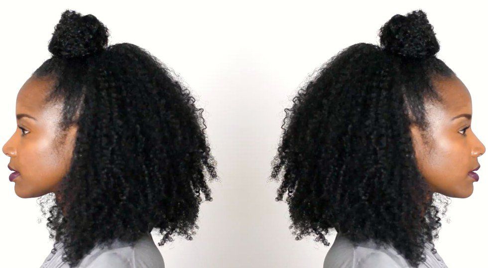 This is a very easy style. All you have to is just wrap your fine natural curly hair once with a scrunchy and you're good to go! It's cute and it's simple. If you want to keep your curls over night, you could also use this as a protective style for your hair. That way, your beautiful natural curls will last longer.