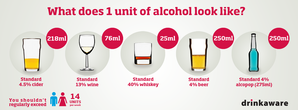 The percentages above are based on ABV, or alcohol by volume which is listed on all alcoholic beverages. Remember that some bottles have more ABV than others and will take more or less to equal a unit so you should adjust accordingly.