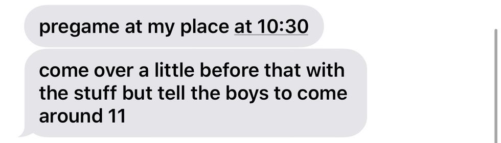 Because we have so many things going on during the day, it only makes sense that we choose to let loose with our friends during the nighttime, when we finally have time to ourselves. From what I know as a second-semester sophomore residing on campus, pregames usually start around 10:30 PM, leaving parties to start closer to midnight. I don't know how other colleges are, but students at my university usually "hit the bars" around campus after midnight.