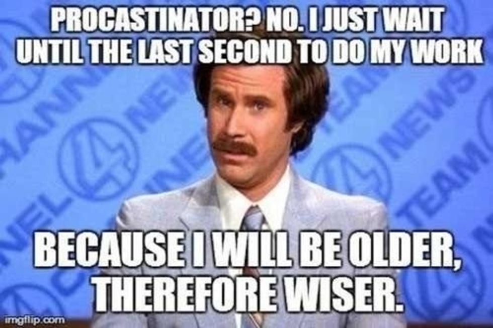 When you realize how much time you have to study, but remembering you have to work around your naps, social life, shows to catch up on and food you need to eat. With all the stuff going on there is almost no time at all to study.