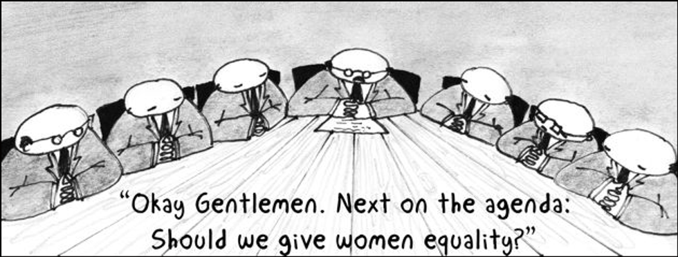 Patriarchy and feminism are direct opposites of each other. In "What Is Patriarchy," Malise Rosbech states that women “should abandon the concept of patriarchy…[and] look towards the future of intersectional feminism.” Today’s feminism centers on the social, political, and economic equality of the sexes. For example, Feminists who are actively attempting to break down the walls of patriarchy. Via social media blasts, like the #BringBackOurGirls campaign, and protests like SlutWalk, women are now being empowered in more ways, and thus systematically breaking down patriarchy. Patriarchy “invokes a generality of male domination.” In history, women have always fought for the natural rights endowed to men. For example, in the United States, property was inherited via primogeniture. The oldest son would inherit the land, leaving women destitute and dependent on husbands and brothers. Women were always forced to be dependent on men. Alice Walker’s "The Color Purple" is centered on a character who is a victim of patriarchy. Celie, only 14 years old, is forced to marry a man double her age because he needs a live-in nanny and unpaid maid. In actuality, Celie was a slave -- to her husband, and the patriarchy.
