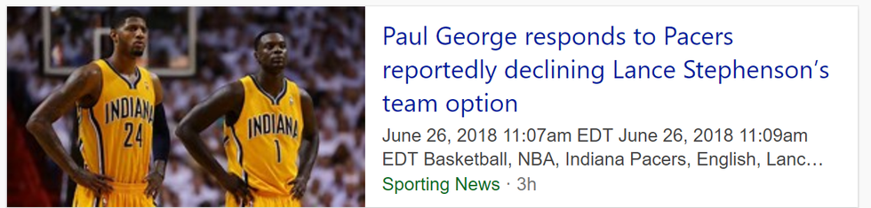 With the off-season upon us the first step is to follow the different contract options. Many contracts will have either a Player or a Team option for an additional year. One such option was connected to Indiana guard Lance Stephenson. Lance is a crowd favorite, infamous for causing Lebron all kinds of inconvenience including blowing in his ears for some inexplicable reason. However, the 27-year old averaged only 9.2 PPG this year and his antics can cause costly turnovers. In an NBA where players like Lance are a dime a dozen the Pacers decided to save the $4+ million and decline the option. Now here's the important part. The Pacers have said they will look into resigning Stephenson after considering all other options. But, Paul George was mad. So George went on Instagram to lament the decision, questioning "...and I was the bad guy". Yes Paul, you are still the bad guy. You almost destroyed the organization that you had spent the entirety of your NBA career with before jumping ship. It would've been ok to leave, but by announcing it from the mountaintops you nearly ruined the Indiana Pacers franchise for the foreseeable future. Then Kevin Pritchard worked some magic, Victor Oladipo went from the Magic to the Thunder and now on the Pacers is a certified wizard (not from Washington), and a young core looks poised to take the step into NBA stardom. Still, Paul George decides it is his job to tell the Pacers what a travesty they are by letting "Pacers legend" Lance Stephenson go. Regardless of the validity of this statement (I would argue there is very little) it is undeniably NOT in Paul George's rights to criticize the team he so disgracefully left. Sorry PG, you're still the bad guy here. Have fun in LA, OKC, or wherever you end up. Just pray that you don't see yourself as the only thing between Vic Oladipo and a basketball hoop anytime soon.