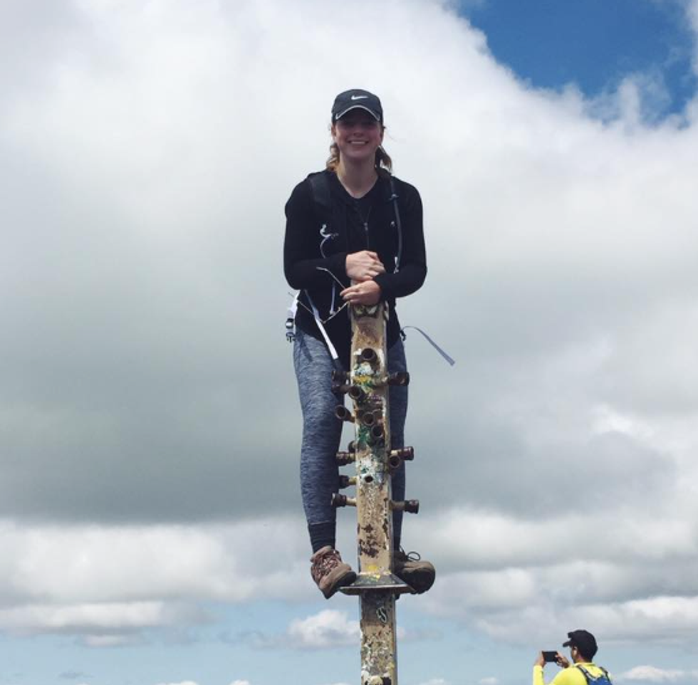 After about an hour or so, I finally saw the summit. About darn time. My legs were burning, I realized that I had forgotten to put on sunscreen (sorry Mom!), and my iPod "Turn Up AF" playlist was about to repeat itself. Basically, I needed to get to the top ASAP. Despite nearly slipping off a sheer cliff due to my notoriously unsteady footing, I made it to the top -- only to be greeted by a massive line. I mean, I had conquered the mountain -- all 2,500 feet of it -- and I needed a photo.