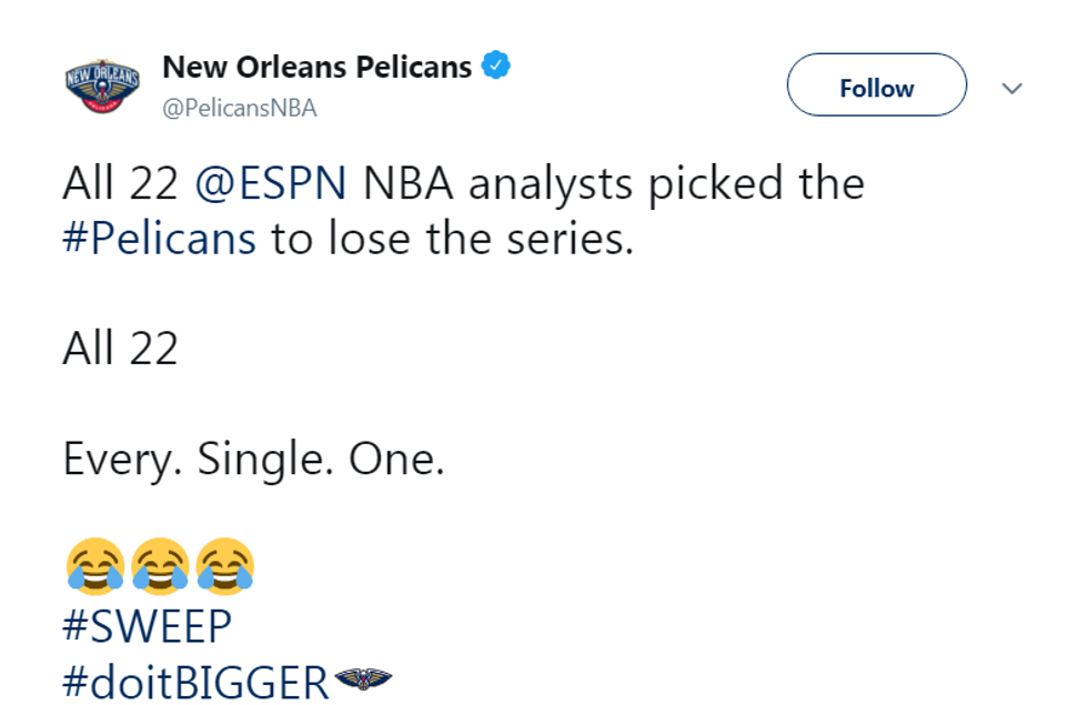 All 22 ESPN.com analysts predicted that the Trail Blazers would eliminate the Pelicans in Round 1; New Orleans instead dominated, sweeping the series 4-0.