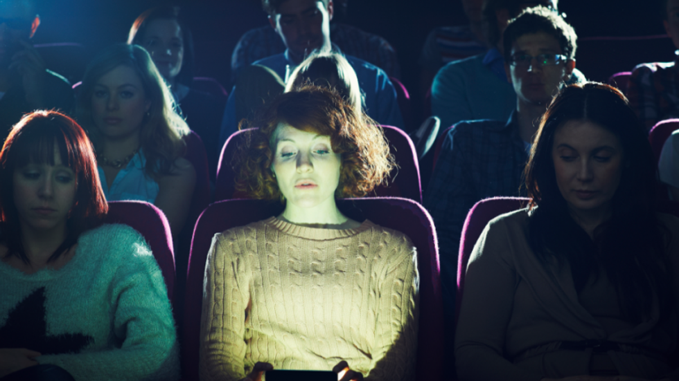 I know for a fact that we have all experienced this one. Yeah, we all check our phone once in a while because nobody actually turns their phone off. But for somebody to be actually full on texting having conversation throughout a movie, i have to wonder why you even spend your money to come and watch it. Especially sitting in the back of the theatre and trying to watch that movie and that one person that was fortunate enough to get that perfect middle seat in the theatre is wasting that seat because they're texting the whole time. In the end its just flat out distracting I mean at least turn down the brightness.