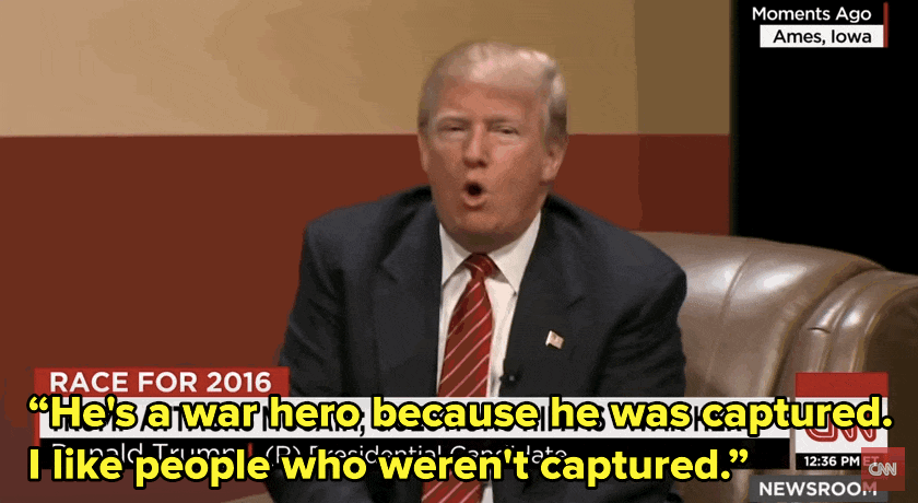 Trump claimed McCain wasn’t a war hero because he was captured and spent 5 years as a prisoner of war in Vietnam. He also avoided his Vietnam War draft, insulting all those who served our country.