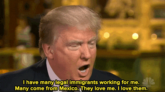 Trump is notorious for misrepresenting the Mexican community. He constantly stereotypes them and labels them as criminals and rapists. He even kicked Jorge Ramos out of a press conference, saying, “go to back to Univision”.