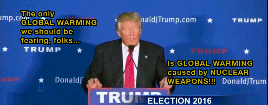 Donald Trump legitimately thinks climate change is fake. This may be one of his most dangerous stances because it affects every human being on the planet. As president, he wouldn't take part other countries' efforts to take action against this worldwide serious issue.