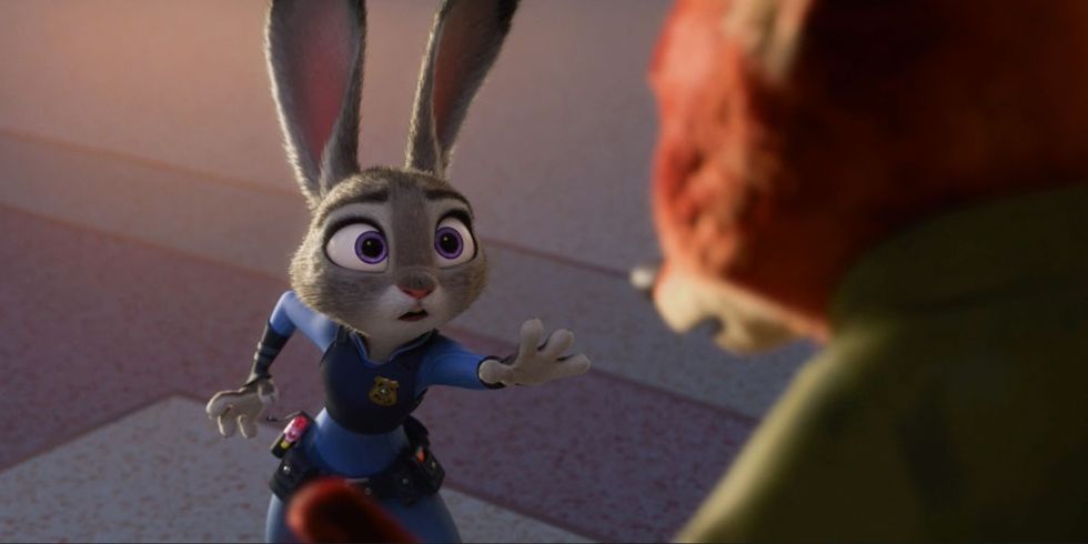 Judy Hopps is the protagonist, and as she is a rabbit, she is considered "prey." She wants to be a cop, a position traditionally reserved for larger, hardier creatures. Because she knows how it feels to be disregarded and mocked for being a rabbit and having the desires she has, she tries her best to be open-minded to everyone.