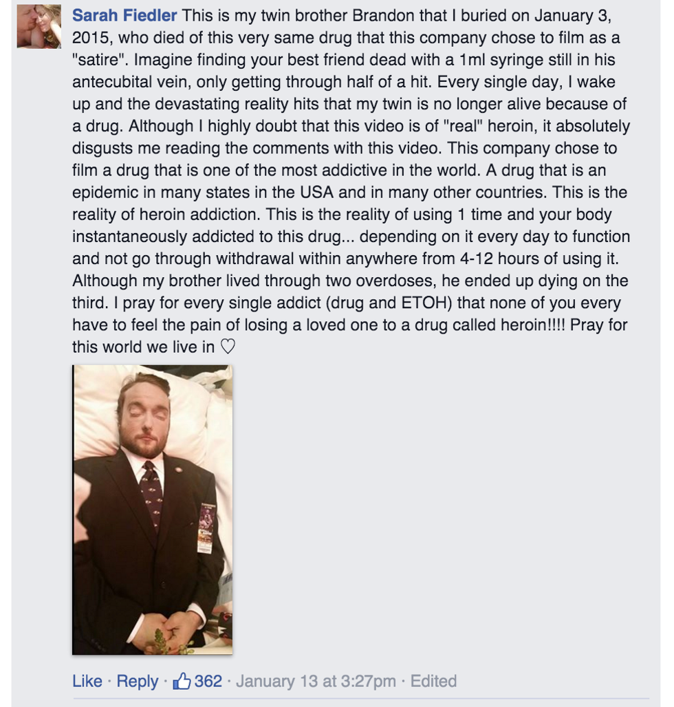 One viewer even posted a picture of her deceased twin brother in a casket, of whom she said died of heroin.