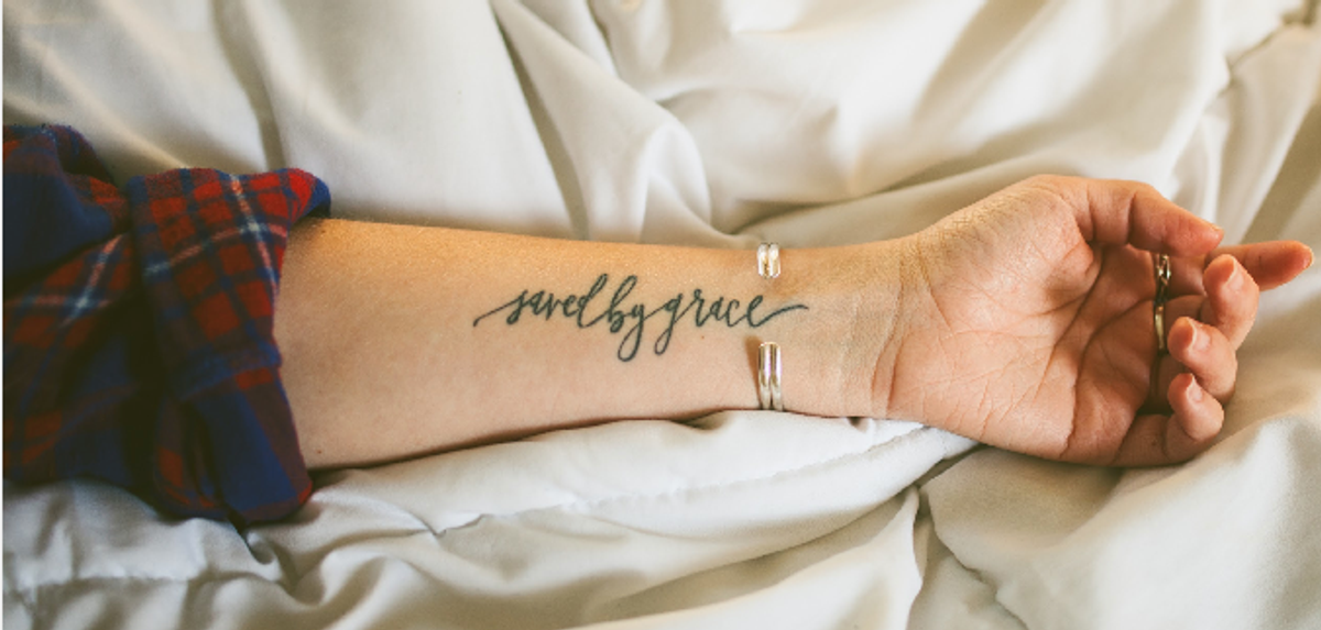 Excuse me for not striking you as the kind of person that has body art. I may not have 27 tattoos and piercings, but I do have a few that I love, that I have chosen to wear discreetly. It's not that I'm ashamed of them, it's how I grew up. My parents are pastors, and their image is everything. My parents are probably some of the most spiritual people I have ever met. So connected to God, truly it's a blessing to learn from them, and I love Jesus too—but I'm a wild child. So as much as I want to be connected to the good Lord spiritually, and be that perfect person—I'm not, and I know that I never will be.