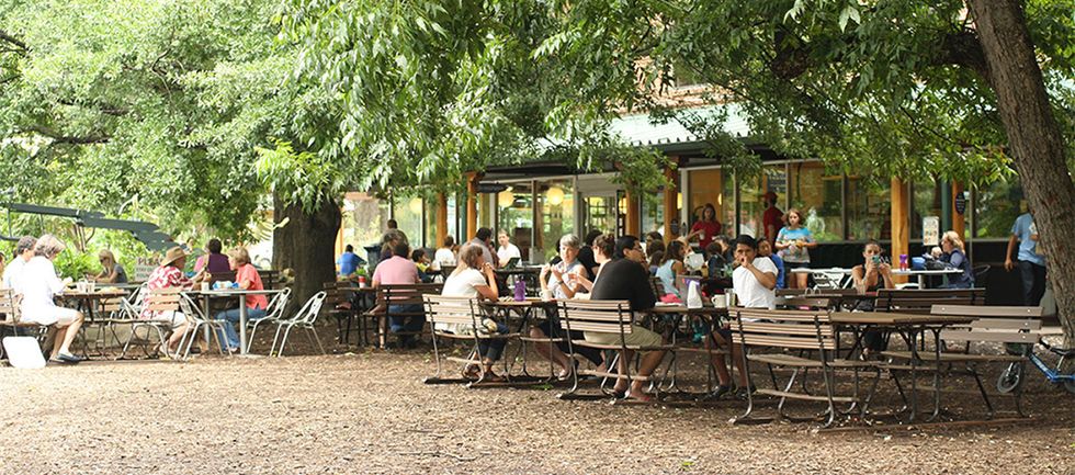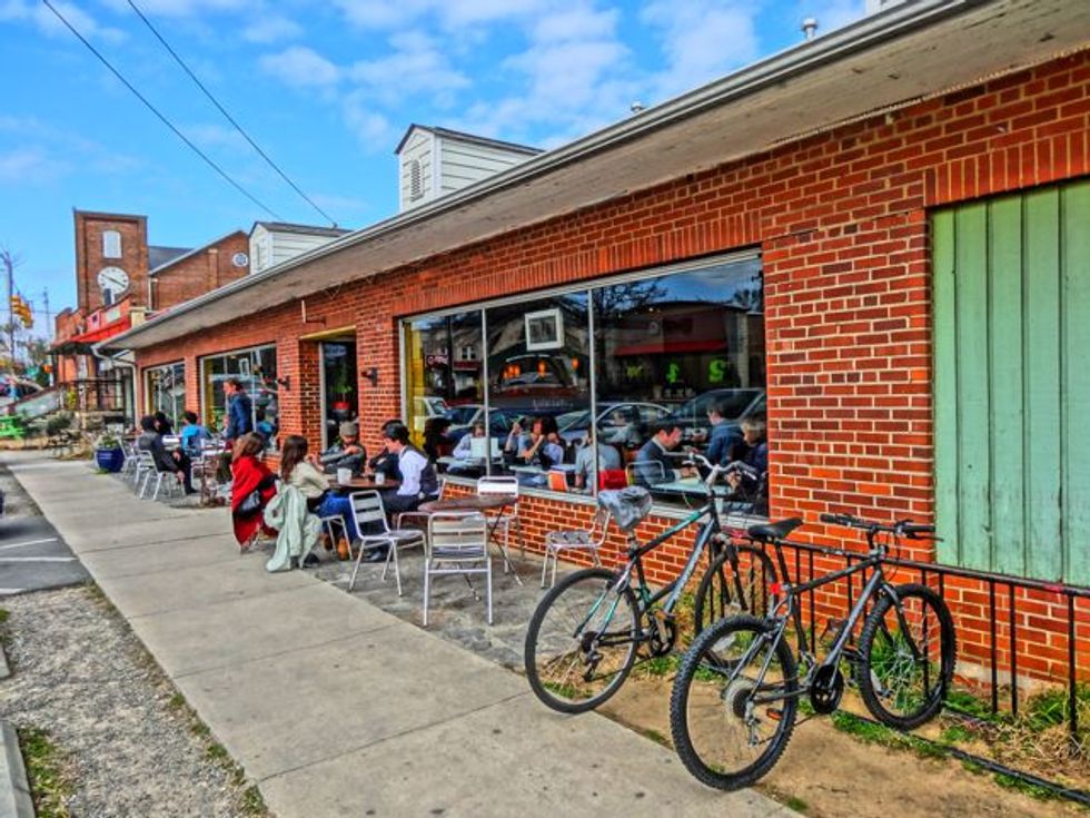 The ambiance at Main Street Coffee in Carrboro is not the best, but getting a cinnamon latte from there and heading across the street to the beloved Weaver Street Market seating under the oaks can’t be beat.