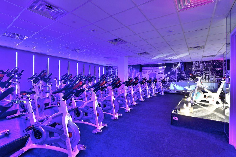 Here's the best part about TOUR Cycle — besides the fact you burn like 600 calories every ride— every now and then TOUR Cycle does themed rides. They will pick two artist and battle them throughout the workout. They have done Justin Bieber vs. Beyonce, Lady Gaga vs. Katy Perry, and most recently they did Old Britney vs. New Britney. Even if you can't make it to one of these rides, all of the instructors (no matter the time of day) will make sure your ride is fun and up-lifting. The bright lights that bump to the beat of the music while your surrounded by the pitch black motivate you becasue you truly feel like you're at a Kanye West concert. I come here with one of my best friends all the time, and even my mom comes occasionally. The classes TOUR Cycle provides are perfect for any level of fitness. Whether you're a Division 1 athlete or you have never worked out a day in your life, you can always go at your own place in these classes. The ride is what YOU make it! You and 34 closest friends can all fit in the Tour Studio together and go for a ride.