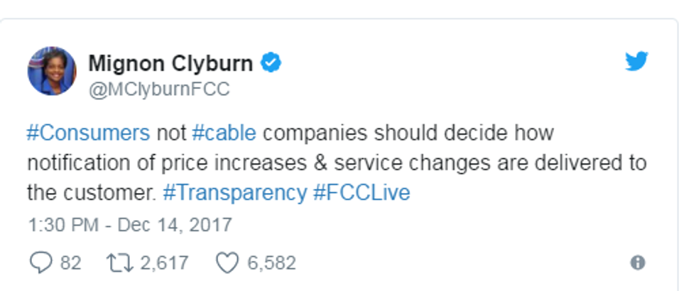 We applaud Jessica Rosenworcel and Mignon Clyburn. The only two on the the FCC whom voted against the repeal. They are both democrat against 3 Republicans, however their affiliation is not what matters, only their actions. For Ajit Pai was appointed by the democratic president, Barrack Obama in 2012, thus proving affiliation does not matter.