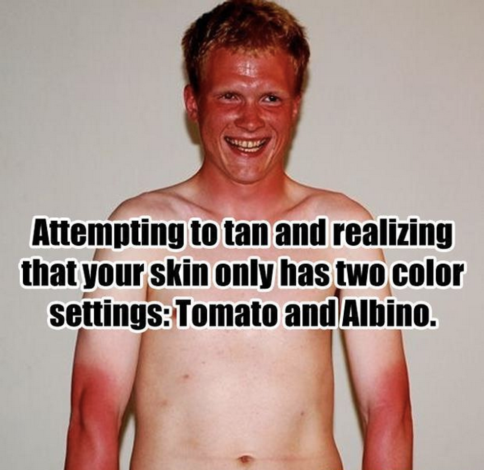 Ah, summer time. It's the time of late night bonfires, s'mores, and beach getaways. It's the time of firecrackers and barbecues. It's also the time of the dreaded outdoor tan. I'm a Triple P: a perpetually pale person. As a perpetually pale person, the social construct of tanning has always plagued me. I don't tan. You can pretty much ask anyone I know. It just doesn't happen. As the truest meme on the internet says, my skin only has two settings: tomato or albino.