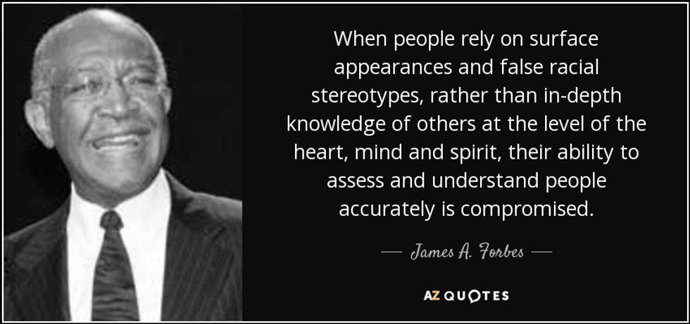 Let's say you were in the middle of a job interview and all of a sudden the interviewer stops. He or she then says, "You know what? I don't think you're going to get the position because all insert race/gender/age/etc. are bad workers and that'll be bad for business, but have a nice day." Would you just say, "Thank you sir/ma'am," then leave? No? Then why is it that when our friends say something derogatory or make use of a racial, cultural, sexual or other stereotype we sometimes laugh or disregard it and turn a deaf ear? Whether we like it or not, we sometimes form hasty conclusions in our minds about people, both individuals and groups. When our hasty conclusions begin to affect our actions, the way we treat or perceive those people and potentially the rights of those people, it is at that point that we realize we have a problem. At this point, it's a little too late.
