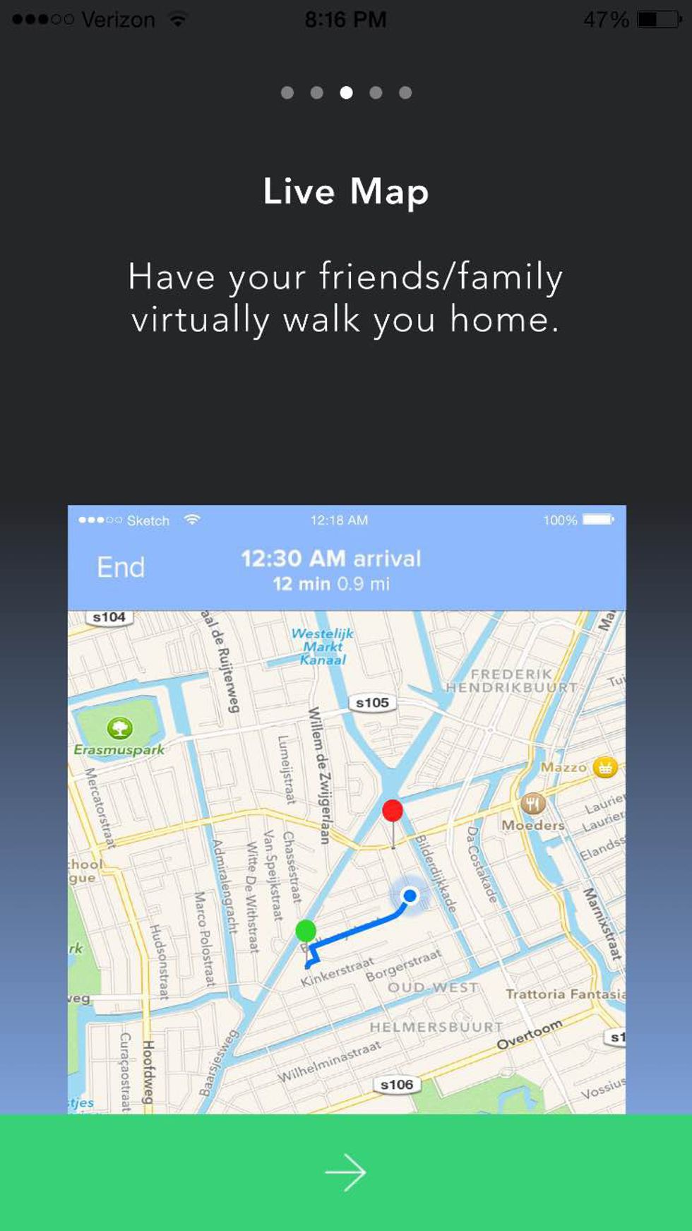 So whether you're walking home in the middle of the night from the library, from the bars, or from a basketball game, now you can have the assurance of someone virtually there with you the entire way. They even put a button to let your companion know if you feel nervous, or if police need to be called. The best part is that the companion you are contacting does not have to have the app to walk you home. Here's how it works: