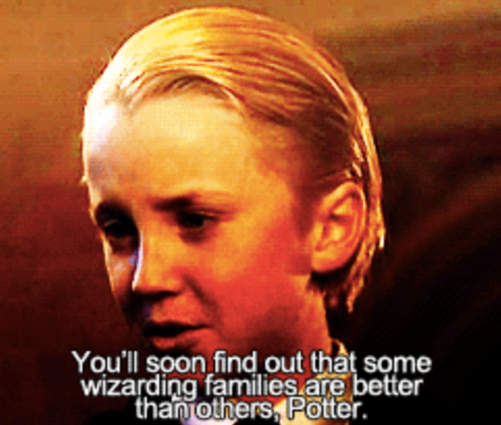 We all remember the very first Hogwarts scene. Harry Potter standing among his awkward, jittery classmates for the very first time, awaiting their entrance into the great hall, where the sorting hat will determine the house that will label them for the rest of their lives. Pre-pubescent Neville Longbottom diving for his once-missing frog Trevor at the feet of a very un-amused McGonagall. And of course, the little white haired boy who grins slyly at the very mention of Slytherin house. As we all know, this is Draco Malfoy; and in this scene, he presents Harry with a choice that will determine his entire Hogwarts experience, and also the course of his life.