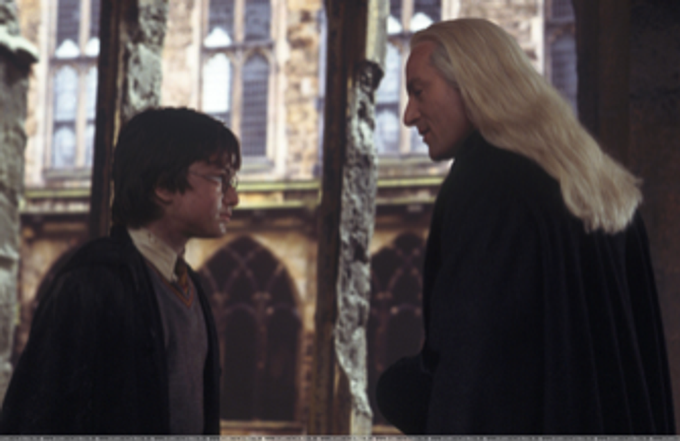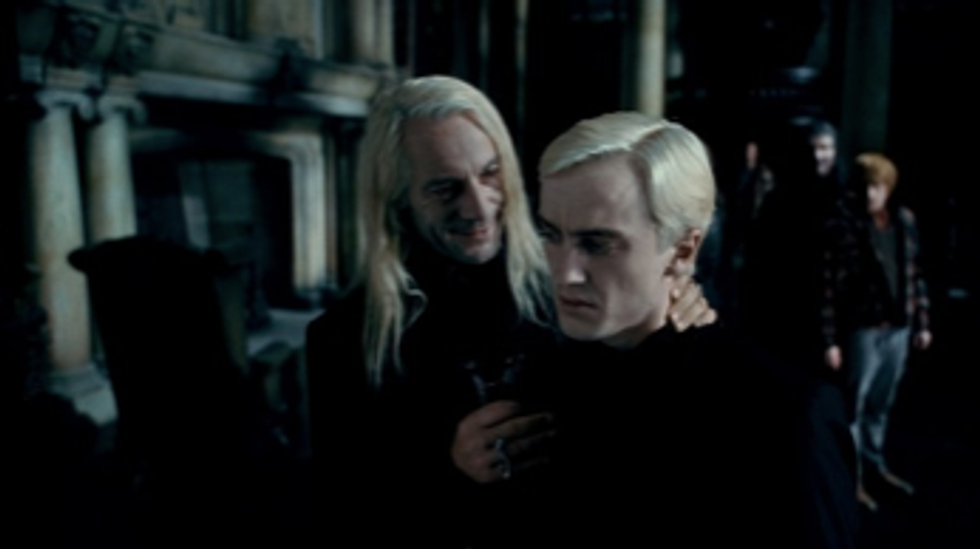 At this point, we can all tell that Draco and Harry’s friendship isn't genuine. It’s built upon a (mostly one way) platform of jealousy, competition, and sarcastic remarks. And Lucius was the one behind it all. It’s a perfect plan: rather than going through all the trouble to keep tabs on Harry and to find subtle ways to carry out Voldemort’s requests (slipping Harry the journal in Diagon Alley, etc.), what better way to infiltrate the enemy than to get him on your side?