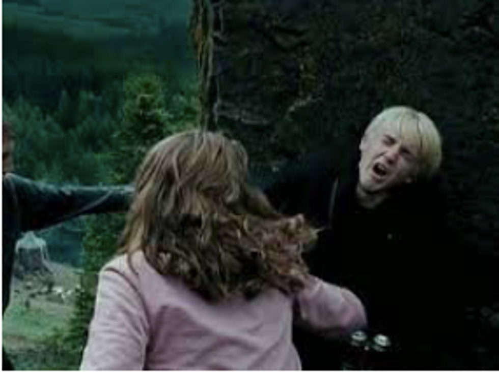 Attracted to each other’s sharp wit and competence, Harry and Hermione begin a passionate whirlwind romance that sends Ron into a spiral of Snape-like depression and bitterness. Harry begins to taunt Ron James Potter-style. Like father, like son.