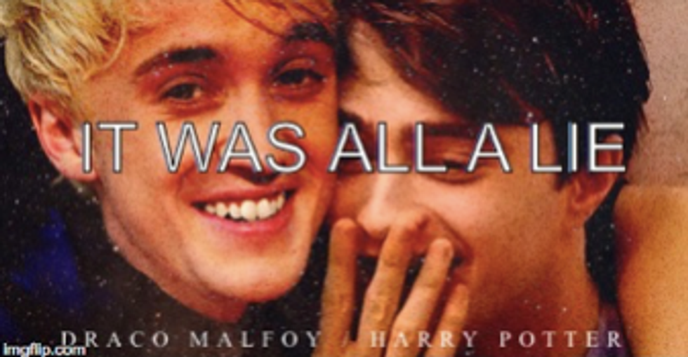 Still hurt from the fresh wounds of betrayal from his ex-BFF Draco, and growing tired of the oppression from Delores Umbridge, Harry decides to form Dumbledore’s Army, and doesn’t let any other Slytherins join out of his newfound wariness of the legitimacy of the friendships he has with members of his own house. He condescendingly teaches his inferiors the ins-and-outs of defense against the dark arts, and routinely sends Neville Longbottom out to fetch him pumpkin juice. Draco is spiteful and rats out Harry for not allowing him to join his club.