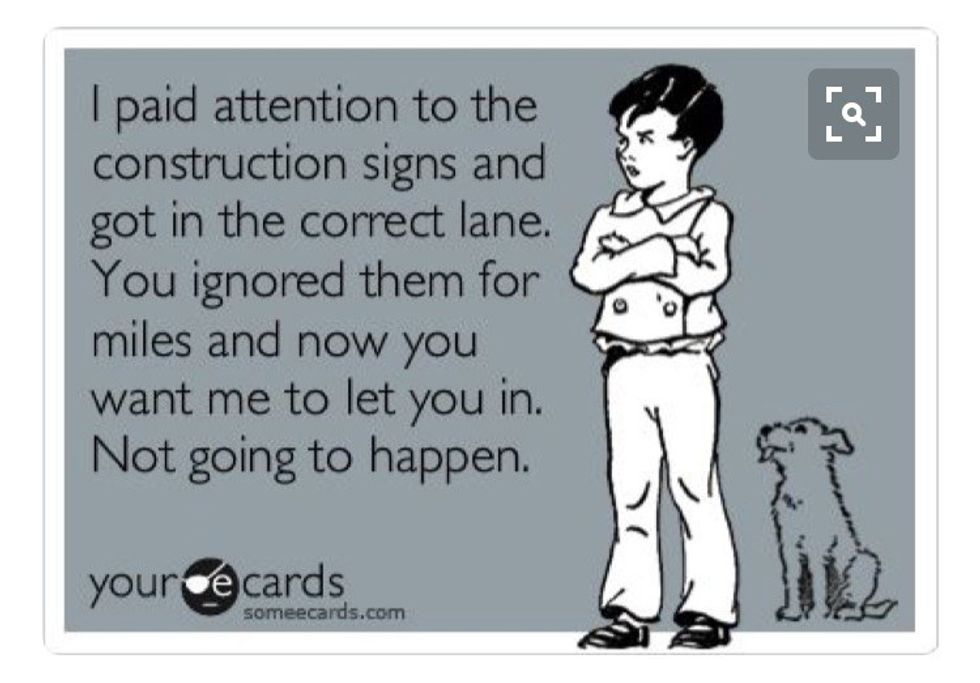 Ok, let’s be honest, everyone fudges the driving laws just a little (anyone heard of a California Roll?). So this is not about speeding, not stopping at stop sign, or even not knowing “yield” means (news flash, it doesn’t mean “stop”). Blinkers are a wonderful invention to let other drivers know your intentions, so that they may make better driving decisions. Also, merging lanes are long, so that you may merge BEFORE the end, it is not to give you a better position in the line up. And this is for all the small town residents out there, if you are slow and have line of ten cars behind you, use the turn outs.