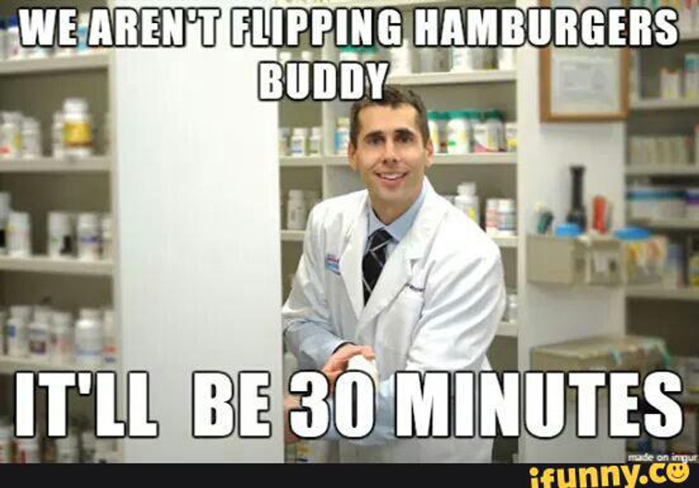 The statement "seriously!?" which is usually followed by some swears is one of the most repeated statements we hear on a daily basis. With all this being said, though, I really do love my job and love providing genuine care to the patients. If you give me respect then I'll give you all the respect that is possible. There are the regular customers who understand how busy it can get and don't freak out when they have to wait a few extra minutes to receive their prescriptions. To those customers, I want to say thank you, we appreciate you more than you will ever know! So next time you have to go to the pharmacy please try to take a deep breathe and work with us to get your order out as soon as possible.