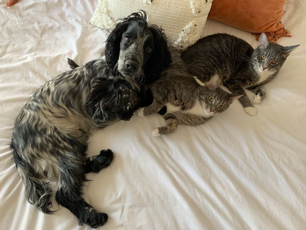 Hunter is a Field Bred English Cocker Spaniel who is as smart as he is cute. My sweet, happy dog has endless energy and I don't think his tail has ever stopped wagging. A friend once said he looks like 3 different dogs put together with short legs and long ears that he habitually trips over while he parades around South End. He makes passers-by smile which makes me infinitely happy! I love him so much!