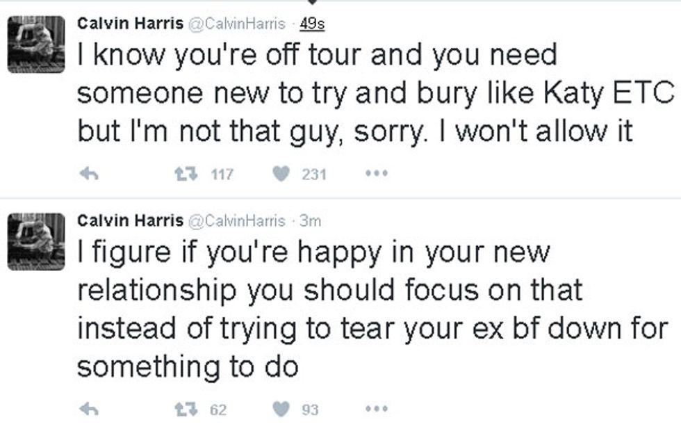 After the Calvin Harris tweets heard round the world, one specially stands out as he reveals he will not let his ex-girlfriend paint him poorly after their break up in an attempt to "bury him like Katy".