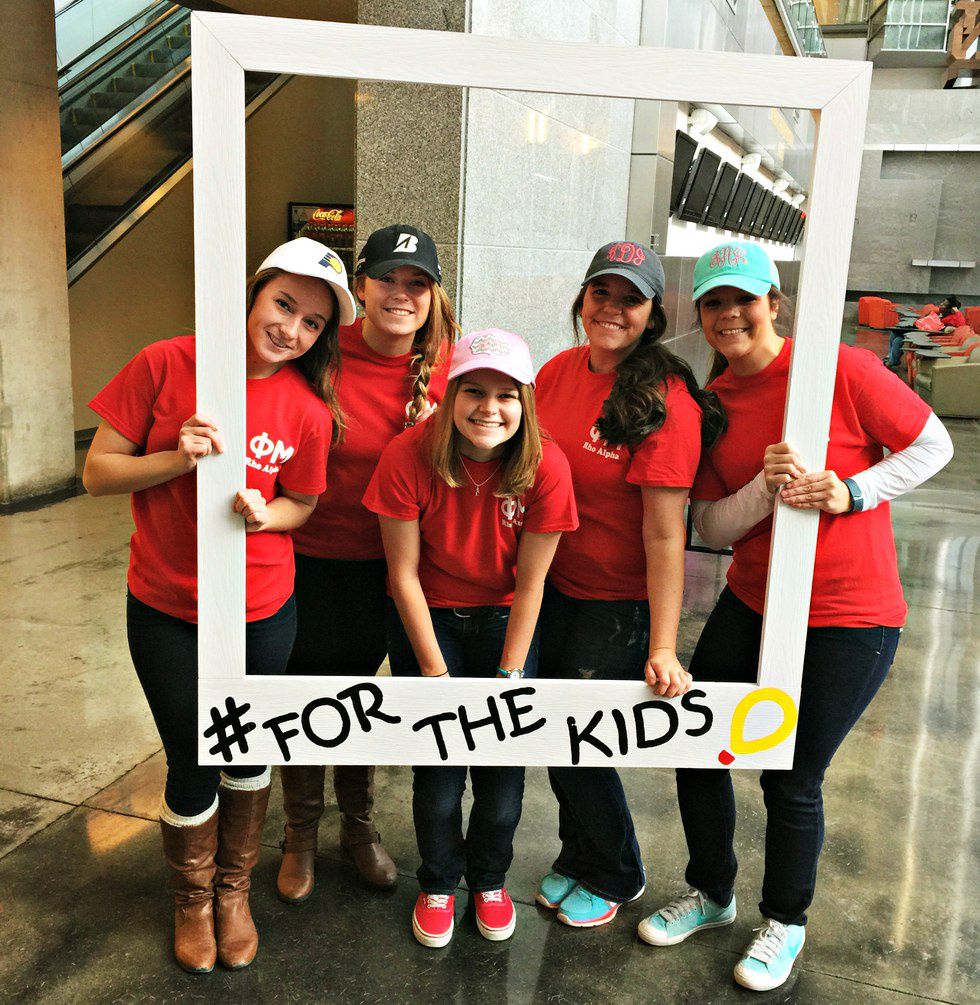 Philanthropic work is a top priority for the Rho Alpha chapter. We are willing to do anything for the sick children; we will stand outside in the cold "canning" and collecting donations, teeter-totter for 36 hours, make hundreds of pancakes to sell, and stay on our feet and dance for 12 hours. We want to help those kids more than anything else and have worked hard to be top fundraiser at Jagathon to make an impact in the life of kids at Riley Hospital for Children. In our spare time, we volunteer at various locations throughout Indianapolis. Our chapter truly lives by the quote, "You have not lived today until you have done something for someone who can never repay you."