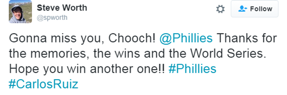 Former Phillies pitcher Roy Halladay shared with CSN Philly, “Chooch was the little engine that could for a team loaded with big names, but no player was more valuable to the team as a whole than Carlos!”