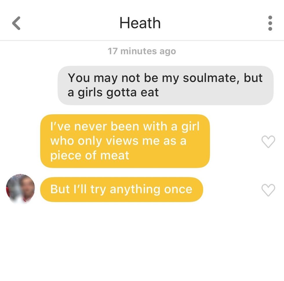 Little does he know he probably has already been with a girl who views him only as meat. It's 2018, Heath.